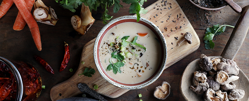 Tom kha is a deliciously spicy and sour Thai soup traditionally made with coconut milk and chicken broth. But now vegetarians can rejoice with this tasty vegan tom kha with shiitake mushrooms!