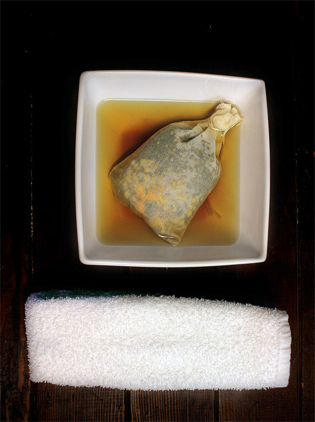 2. Soak a clean piece of fabric/cotton material in the tea and squeeze excess tea out of the cloth.